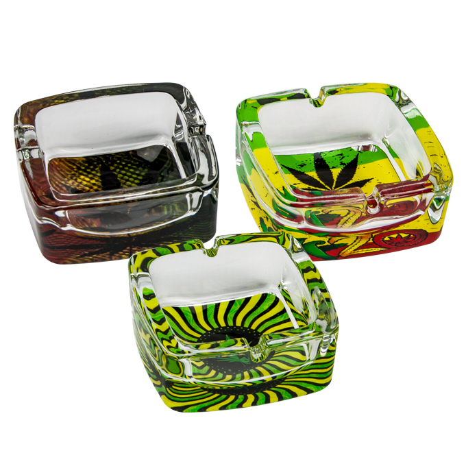 Cenicero De Vidrio cuadrado Hojas ASH205