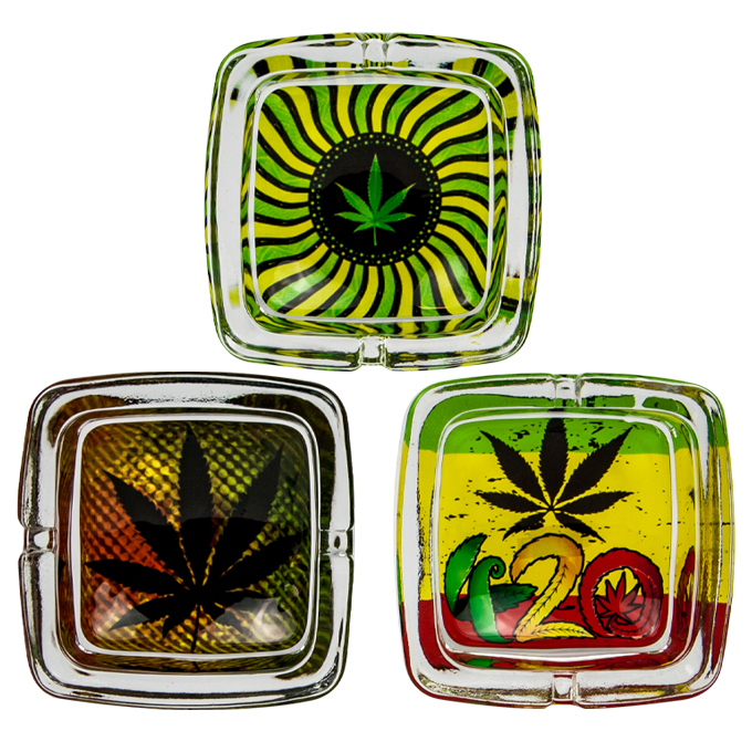 / Cenicero De Vidrio cuadrado Hojas ASH205